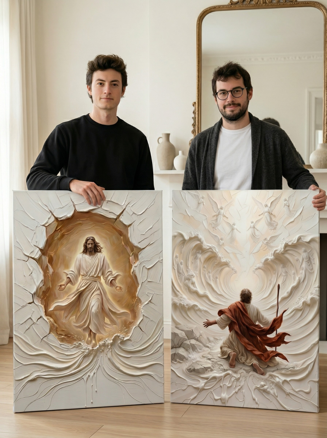 It started like it starts for most people — scrolling. We kept stopping on incredible Jesus art on social media, the kind that actually made us feel something. Not mass-produced big box prints. Not $2,000 gallery pieces. Art that felt present, human, and real.